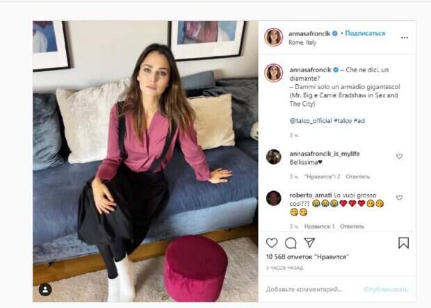 Об этом пишет Politeka.net со ссылкой на страничку знаменитости. "Что скажешь, бриллиант? - Просто дайте мне гигантский шкаф! (Мистер Биг и Кэрри Брэдшоу в фильме «Секс в большом городе»)", - написала звезда под фото. Фанаты поставили более 10 тысяч лайков и написали комментарии: "Великолепная", "Вы хотите, чтобы он был таким большим ???", "Ты выглядишь грустной", "Очень сладкая", "Как всегда красиво", "Элегантный человек", "Замечательная", "Какая ты красивая", "Анна ты красивая", "Гармония и красота, хорошего дня", "Анна, ты самый драгоценный бриллиант". Сообщалось, что Внучка 90-летнего хореографа и судьи "Танців з зірками" Григория Чапкиса Анна Сафрончик похвасталась аппетитными формами. Красотка опубликовала пост, представ на фото в красивом черном топике, который показала, распахнув голубую рубашку. Снимок Сафрончик подкрепила словами песни группы Queen "The Show Must Go On". Напомним, 90-летний Чапкис рассказал о тяжелых последствиях болезни и заточении А еще Politeka сообщала, что сын 90-летнего Чапкиса из "Танців з зірками" показал, что унаследовал от отца, зажигательные кадры Также Politeka сообщала, что трагедия в семье Чапкиса, внучка легенды "Танців з зірками" показала последнее фото