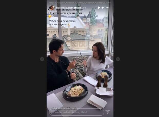 На этот раз пара показала одну из своих традиций – совместный обед перед гала-концертом. На кадрах Александр и Екатерина сидят за накрытым столом. Супруги явно были в игривом настроении, а потому решили устроить шуточную «дуэль» на вилках. Они оба усердно фехтовали столовыми приборами, однако, результат сражения остался за кадром. «Обед был по расписанию! Не изменяем традициям. Перед гала-концертом нужна энергия», - подписала кадры Кухар. Поклонники балерины не смогли прокомментировать это видео, так как в разделе Сториз нет такой возможности. Ранее мы писали, что Кухар опубликовала загадочное фото, на котором с трудом можно было разглядеть ее силует. Балерина была одета в красивый испанский костюм. Пышная юбка развевалась, пока артистка стремительно удалялась из кадра. Напомним, Кухар из «Танців з зірками» в образе горячей испанки заманила в оковы ночи: «Ах, сеньор…». Как сообщала Politeka, муж Кухар из «Танців з зірками» покорил женские сердца новым образом, фото знойного красавца: «Наше трио…». Также Politeka писала, что Кухар из "Танців з зірками" в разноцветном купальнике пленила романтичным образом: "Вот нахлынуло".