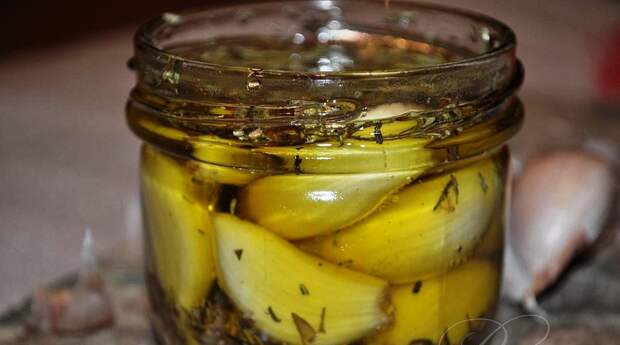 Но есть два но!Во-первых, уже через месяц цена возрастет как минимум в два раза, а зимой - и в три. А, во-вторых, в продаже в основном будет идеально красивый, но совершенно бесполезный китайский чеснок, который и в подметки не годится домашнему, выращенному бабушками в огороде, зато напичканный кучей пестицидов и фунгицидов.[caption id="attachment_46086" align="aligncenter" width="506"] Китайский чеснок[/caption]А ведь можно просто обеспечить себя заготовкой приправы практически до следующего урожая. Вот что вы сможете сделать (всего за несколько часов) из двух килограммов базарного чеснока. Чесночная паста Состав: 1 кг чеснока; 200 мл (1 стакан) оливкового масла; 1 ст.л. мелкой (не кристаллической) соли. [caption id="attachment_46088" align="aligncenter" width="1000"] Чесночная паста[/caption]Как сделать: Чеснок очистить, помыть, подсушить на воздухе. Измельчить блендером или мясорубкой. Добавить соль и масло, хорошо перемешать. Разложить в сухие прогретые банки. Выровнять и залить оливковым масло на полсантиметра. Плотно закрыть, хранить в холодильнике. Это готовая приправа - берете сколько надо и добавляете в любое блюдо. Хранить можно до полугода. Зубки чеснока в масле Понадобится: 700 г очищенных зубков чеснока, при желании можно порезать; перец горошком: 20 шт. черного, 7 шт. душистого; 2 бутончика гвоздики; 1 ч.л. порошка куркумы; 2 ч.л. горчицы в зернах; 2-3 веточки чабреца, лимонной мяты или розмарина (не обязательно); 0,5 м рафинированного подсолнечного масла. [caption id="attachment_46078" align="aligncenter" width="1093"] Чеснок в масле[/caption]Приготовление: Две банки по 0,5 л вымыть, высушить в духовке. На дно, разделив пополам, поместить специи. Заполнить банки очищенными зубками. Залить маслом, чтобы полностью покрывало чеснок. Укупорить, потрясти, хранить в холодильнике хоть до нового урожая. Весь аромат и вкус останутся неизменными, плюс - у вас будет еще отличное чесночное масло. Чеснок с имбирем Оставшиеся 300 г чеснока очищаете, добавляете к нему 200 г почищенного корня имбиря и измельчаете блендером. Раскладываете по маленьким баночкам и в холодильник. Можно добавлять к мясу и в соусы.[caption id="attachment_46084" align="aligncenter" width="1000"] Чеснок с имбирем[/caption]А при простуде - 1 ч.л. размешиваете в 150 мл теплой воды и выпиваете на ночь. Утром будете здоровы как огурчик.