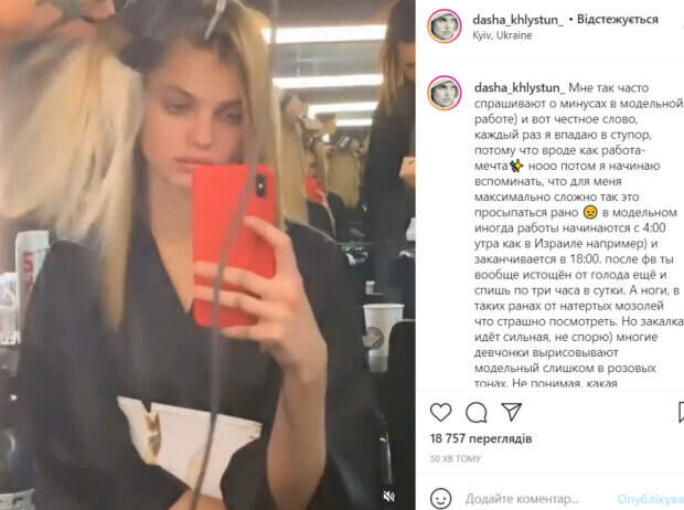 Возлюбленная героя популярного шоу "Холостяк" Макса Михайлюка рассказала о тяжелых буднях моделей Как передает Politeka.net, у себя в Инстаграм 25-летняя модель Дарья Хлистун рассказала, что приходится переживать девушкам, которые работают в модельном бизнесе. «Меня так часто спрашивают о минусах в модельной работе) и вот честное слово, каждый раз я впадаю в ступор, потому что вроде как работа-мечта.