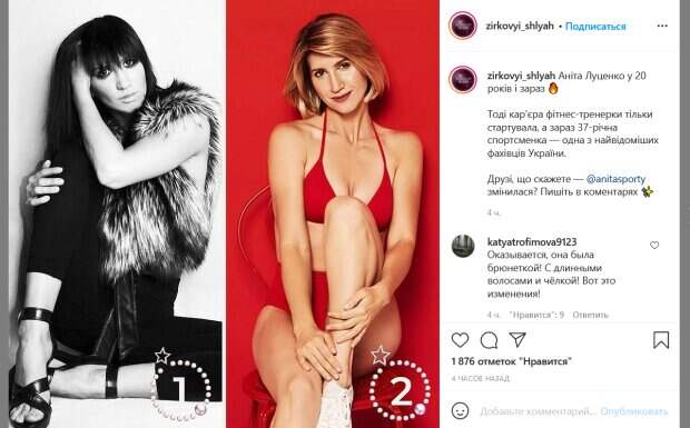 Так, в аккаунте опубликовали коллаж с фотографиями красотки, сделанными с разницей в 17 лет. Согласно подписи, на первом снимке Аните всего 20 лет. Тогда у нее были длинные черные волосы и вызывающий макияж с акцентами на глаза. Сейчас же тренер носит светлое каре и красится гораздо более умеренно. «Анита Луценко в 20 лет и сейчас. Тогда карьера фитнес-тренера только стартовала, а сейчас 37-летняя спортсменка - одна из самых известных специалистов Украины», - говорится в подписи к фото. Украинцы тут же принялись комментировать пост. «Оказывается, она была брюнеткой! С длинными волосами и чёлкой! Вот это изменения!», «Брюнеткой было лучше!», «Красивая, изменился имидж а так-то как была так и есть в очень хорошей форме», «Класнючая! И раньше и сейчас!», «Даже очень сильно изменилась», «Ой, так на Линду похожа. Сейчас - просто бомба», - пишут люди. Напомним, тренер "Зважені та щасливі" Анита Луценко нагнулась вперед, блеснув сокровищем в декольте: "Немного вульгарно". Как сообщала Politeka, тренер "Зважені та щасливі" Анита Луценко поразила раскрепощенностью на тренировке: "Что ж ты делаешь...". Также Politeka писала, что тренер "Зважені та щасливі" Анита Луценко расставила ножки и приняла смелую позу: "Ох, ничего себе".