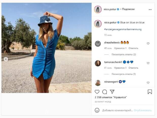 Девушка старается поддерживать интерес к своей персоне, поэтому часто публикует кадры в социальных сетях. "Синий на синем на синем", - написала звезда под фото. Девушка стояла в наряде на пуговицах, расстегнув верхние, чтобы образовать декольте. Николь дополнила образ стильной шляпкой, за которой практически закрыла глаза. Фанаты поставили тысячи лайков и написали комментарии: "Оглушающая", "Жизнь в голубом .. !!!", "Великолепная", "Милая и очаровательная", "Синий тебе нравится", "Голубая красота - универсальная красота, эксклюзивная красота, Нико", "Симпатичный наряд", "как насчет твоих глаз". Мы писали, что немецкая красотка Николь Потуральски впечатлила видом в гардеробной комнате. Николь в этот раз показала в сторис, как выглядят роскошные ноги . Модель была в кофте и ярких трусиках, за которые потянула игриво рукой. Напомним, экс-любовница Брэда Питта неприлично выгнулась, восхитив видом декольте А еще Politeka сообщала, что экс-любовница Брэда Питта раззадорила своими сочными "ягодками", распахнув рубашку Также Politeka писала, что экс-любовница Брэда Питта в "небесном" бикини заставила мужчин пускать слюнки