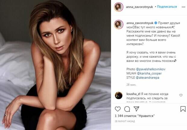 "Привет друзья мои. Вас тут много новеньких. Расскажите мне как давно вы на меня подписаны? И почему? Какой контент вам больше всего интересен? Я хочу сказать, что я вами очень дорожу, и мне кажется, что мы с вами во многом очень похожи", - написала она под снимком. "Добрый день. Я подписана на вас по моему с июля-августа 2019. Очень интересен ваш профиль, так как у вас тут очень уютно, и много красоты) И вы безумно приятный человек, мотивирующий каждый день", "Я подписана недавно и мне все нравится", "С 13 марта 2020. Подписался из-за одной случайности (которые не случайны). Нравится просто любоваться вашей красотой. Получаю огромное удовольствие читая ваши посты и самое главное нравится то, как вы нестандартно, интересно, мыслите", "Ань ,ты такая классная", "Анечка, я на год моложе вашей мамы. С 2006 года поклонница вашей мамы, очень люблю Настеньку, так вот и вас узнала. Ты очень похожа на маму, умная , добрая, рассудительная девушка, красавица, подписалась на тебя. Верю тебе , люблю, желаю добра и всего самого наилучшего вашей семье, процветания!", "Ну, я подписана из-за того что ты очень красивая", - написали поклонники под фото. Ранее мы рассказывали, как дочь онкобольной Анастасии Заворотнюк устроила соблазнительную фотосессию. Так, ее дочь Анна позировала одетой в черное короткое платье в горошек, открывающее стройные ноги модели, также на ней стильный плащ и высокие черные сапоги. Фанаты оценили новые фотографии знаменитости, написав много комплиментов. Напомним, дочь больной раком Заворотнюк поразила беззаботным видом на прогулке. Как сообщала Politeka, дочь больной раком Заворотнюк поласкала свое нежное лицо на камеру. Также Politeka писала, что дочь больной раком Заворотнюк завернулась в кожу и сверкнула голыми ногами.