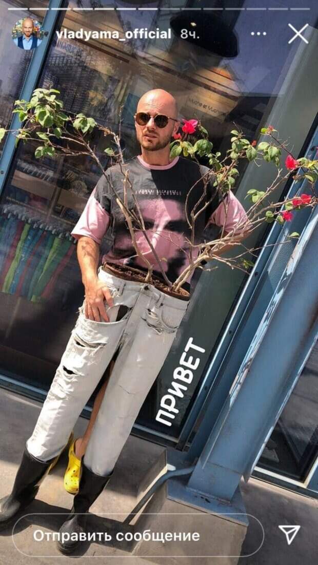 Хореограф и судья шоу "Танці з зірками" Влад Яма взбудоражил публику оригинальным фото Как сообщает Politeka.net, у себя в Инстаграм артист поделился забавным снимком с отдыха. На свежем кадре Яма спрятался за необычным вазоном с цветами. Вазон в виде штанов держал несколько кустов красных роз. Яма спрятался за вазоном, прикрывшись таким образом, что вазон стал напоминать нижнюю часть тела.