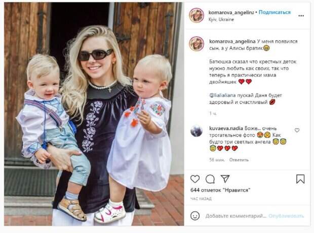 Красотка опубликовала новую фотографию, на которой позировала вместе с дочерью Алисой. На второй руке девушка держала мальчика по имени Даня. Как девушка объяснила - это ее крестный сын. "У меня появился сын, а у Алисы братик. Батюшка сказал что крестных деток нужно любить как своих, так что теперь я практически мама двойняшек", - написала Ангелина. Фанаты поставили сотни лайков и написали комментарии: "Боже... очень трогательное фото. Как будто три светлых ангела", "Какие красивые", "Так похожи вы все, реально двойняшки выходят. С крестником вас". Напомним, сестра Комарова из "Мир наизнанку" начала раздавать советы молодым мамам А еще Politeka писала, что Красотка-родственница Комарова из "Мир наизнанку" удивила эффектным образом в коротеньком топе Также Politeka сообщала, что сестра Комарова из "Мир наизнанку" показала фигуру в купальнике, удивив откровением