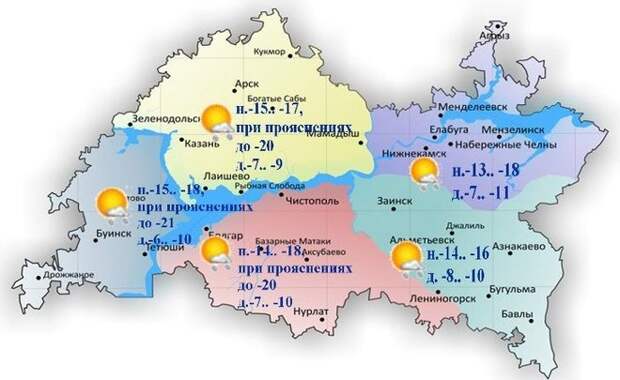 В пятницу, 28 января, в Татарстане прогнозируется облачная погода с прояснениями. Временами небольшой снег. Ветер южный, юго-восточный умеренный, сообщается на сайте Гидрометцентра РТ. Максимальная температура воздуха днем составит -6.. -11 градусов. В Казани ожидается от -7 до -9 градусов. В Набережных Челнах синоптики прогнозируют от -7 до -11 градусов.