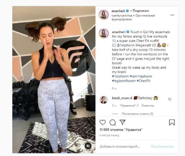 Об этом пишет Politeka.net со ссылкой на страничку знаменитости. "То что нужно для продолжения тренировок", - написала красотка под видео. Фанаты поставили более 10 тысяч лайков и написали комментарии: "Ты выглядишь потрясающе, красотка", "Ты всегда выглядишь восхитительной девушкой", "Люблю видео. Мне нужна моя первая форма", "Я люблю тебя, куколка, ты прекрасно тренируешься", "Сохраняйте свою привлекательность, медовые булочки", "Никогда не думала, что так нужно перед тренировкой !!!", "Энергия течет туда, куда направлено внимание. Джеймс Редфилд", "Потрясающий костюм Чери!! Люблю это! Удачной тебе недели, Ана!". Мы писали, что американская фитнес-модель Ана Чери подарила немного новогоднего настроения личным селфи. Одно из таких порадовало фанатов – Чери блеснула достоинствами в необычной пижаме – коротеньких красных шортиках с рисунками человечков в костюмах, белой майке без рукавов и красной шапке Санта-Клауса. Напомним, соблазнительная фитнес-модель Ана Чери в сверкающем белье ослепила пышными формами А еще Politeka писала, что аппетитная Ана Чери потрусила "мандаринками" в одном лишь белье-сеточке Также Politeka писала, что Ана Чери опустилась на колени, сверкнув упругими "булочками" в стрингах