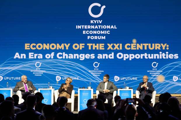 Инициатором Форума выступила холдинговая компания UFuture, возглавляемая предпринимателем Василием Хмельницким. КМЭФ является площадкой для формирования стратегии экономического развития Украины. Форум ориентирован на организацию диалога экспертов, бизнеса и власти, заимствование лучшего мирового опыта, создание «дорожной карты» развития и содействие конвертации идей в реальные действия. Главный вопрос форума в 2021 году — мир в эпоху радикальных изменений. От бизнес-кейсов до визионерских идей — докладчики КМЭФ рассказали об изменениях экономики под влиянием пандемии. Предприниматели, топ-менеджеры, представители международных организаций, аналитики и стратеги компаний в ходе Форума представили свое мнение о ключевых проблемах мировой и украинской экономики и способах их решения, о климатических изменениях и их влиянии на бизнес и социум. Форум открывал Премьер-министр Украины Денис Шмыгаль, который во время выступления по оценке перспективности Украины поделился видением правительства для развития ключевых правил национальной экономики. Инициатор Форума и председатель холдинговой компании UFuture Василий Хмельницкий поделился своим видением перспектив национальной экономики, запуска инновационных производств и развития культуры предпринимательства. По его мнению, Украина имеет существенные перспективы на мировом рынке. Мощный агросектор создает перспектив для развития современных производств в сфере foodtech. В то же время, правительство и бизнес должны больше инвестировать в переработку сырья и создание готовой продукции, что создает дополнительные рабочие места и способствует общему экономическому росту. По словам основателя КМЕФ, сейчас в Украине существует проблема с развитием инфраструктуры стартапов. Несмотря на наличие качественной технического образования, выпускники вузов не имеют надлежащего бизнес-образования. Для этого государство должно создавать экосистему для развития стартапов. Василий Хмельницкий отметил положительные изменения в подходе государства к развитию малого и среднего бизнеса в Украине. Положительный пример – программа кредитования «5-7-9», которая упростила доступ предпринимателей к капиталу. Однако, по словам предпринимателя, государству предстоит многое сделать. Так, доля МСБ в структуре экономики Украины составляет 1,5%, тогда как в мире – в среднем 3-4%. Для развития предпринимательства государство должно проводить образовательную работу, в частности начиная со школы. Генеральный директор Форума Юрий Пивоваров отметил, что репутация страны важна для лидеров, бизнеса и самой страны. Мир должен понимать, что здесь комфортно жить, работать, инвестировать, развивать бизнес. Поэтому следует разработать долгосрочную стратегию развития имиджа Украины, и КМЭФ уже восьмой год делает большой вклад в развитие этой репутации. «Есть три основных тренда, чтобы быть экономически успешной страной. Первый: деньги идут в инновации и идеи. Здесь у нас есть шанс. Нужно развивать инфраструктуру инкубаторов, стартапов, а государству поддерживать перспективные проекты. Второй тренд – климат. Туда идут большие деньги, строят новые более экологичные производства. Третий тренд – развитие производства. Пандемия показала, что есть логистические сложности при транспортировке из Китая в Евр