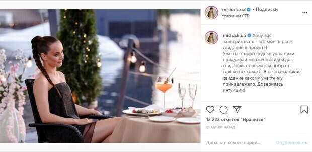 Я не знала, какое свидание какому участнику принадлежало. Доверилась интуиции) Как думаете, с кем состоится мое первое свидание? Могу с уверенностью сказать - оно было потрясающим ) О таком свидании точно мечтает каждая девочка", – написала Ксения. Отметим, что на фото Мишина сидит за столиком в ресторане, на ней – черное короткое платье, открывающее соблазнительные коленки знаменитости, волосы Ксении заплетены в косу. На столике – тарелки с едой и бокал с коктейлем. Фанаты актрисы начали активно комментировать публикацию своей любимицы, причем, большинство из них предполагают, что девушка отправилась на свидание с участником проекта Андреем Рыбаком. "Андрей Рыбак