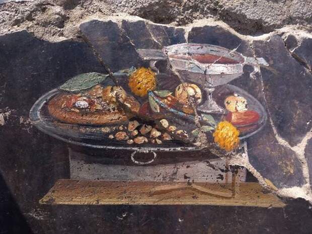 Настенную фреску с изображением «дальнего предка» пиццы обнаружили итальянские археологи. Открытие они сделали во время раскопок на территории древнеримского города Помпеи. Напомним, что город оказался под слоем вулканического пепла в результате извержения вулкана Везувия в 79 году. Как сообщили итальянские СМИ со ссылкой на руководство Археологического парка города Помпеи, внимание привлекает изображение плоской хлебной лепешки круглой формы.