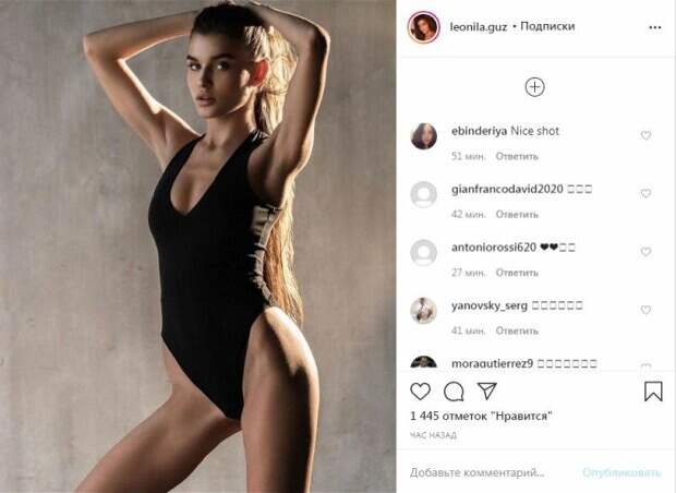 Модель отставила бедро, сверкнув безупречной формой. Декольте черного наряда впечатляло, ведь из него немного выглядывала грудь. Модель приподняла волосы и посмотрела в камеру, приоткрыв губы. За час пост собрал более 1000 лайков и немного комментариев. "Какая секси красавица😘😍❤️", "Прекрасная", "Шикарная 🔥🔥🔥", "Леонила, как ты прекрасна, ты замечательная и очень красивая, очень привлекательная и просто добавлю, что ты хороша, принцесса, целую и крепко обнимаю 💋💋💋💋🤗🤗🤗🤗🌸🌸🌸", - написали пользователи сети. Напомним, Леонила Гузь позировала в одном кружевном белье, демонстрируя невероятную красоту. «Мне кажется, вы знаете о моей жизни больше чем я🤣за самую оригинальную историю переведу на карту 100 долларов», — говорится в сообщении. Ранее мы писали, что Леонила Гузь позировала в тесных черных штанах и топе, из-под которого выглядывает нижнее белье знаменитости белого цвета. «Что за женщина» - коротко говорится в сообщении. Напомним также, что Леонила Гузь встала перед камерой вполоборота, нежно дотронувшись рукой до лица. Красотка со смоки-макияжем и распущенными волосами кинула в объектив игривый взгляд, одарив зрителей легкой улыбкой. Напомним, мисс Украина Леонила Гузь в крохотных шортах засветила лишнее: «Это очень мило». Как сообщала Politeka, мисс Украина Леонила Гузь призналась, что хотела бы изменить во внешности: «Боже, зачем?». Также Politeka писала, что мисс Украина Леонила Гузь без лифчика эффектно приспустила лямочки: виден каждый изгиб.