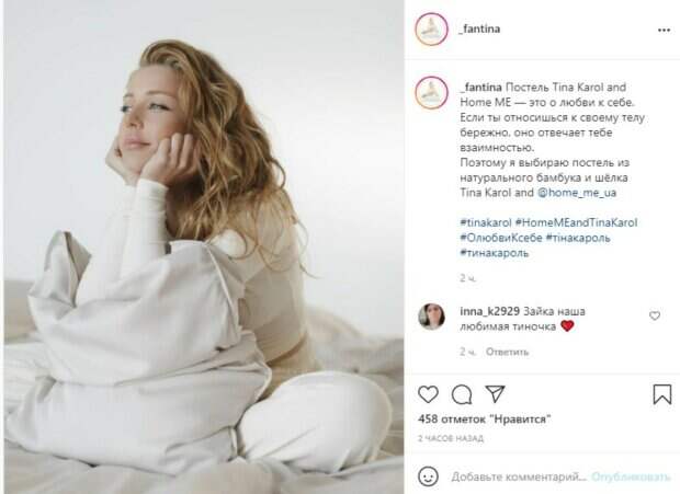 Известная певица Тина Кароль в белом домашнем наряде в постельной фотосессии покоряет нежностью Став рекламным представителем еще одного бренда, Кароль устроила тематическую фотосессию в постели на белоснежных простынях и в таком же светлом костюме. Подчеркнуть свою фигуру Тина решила лаконичным луком, который хорошо подчеркнул ее формы.
