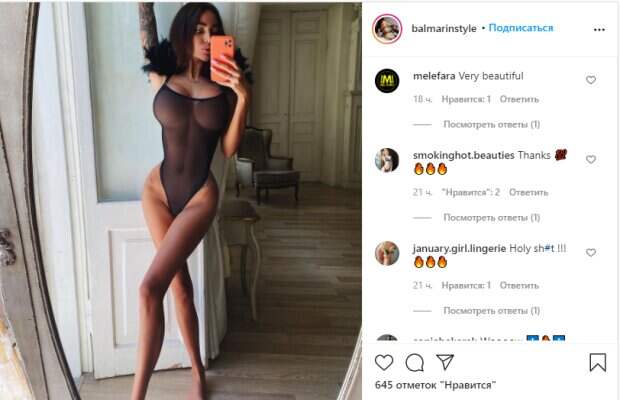 К примеру, фото, на котором Алена позировала в прозрачном боди из черной сеточки, получило массу комментариев с похвалой. Все дело в том, что стройная и высокая красотка показала шестого размера бюст без малейшей скромности и восхитила при этом видом. Стройные ноги удалось подчеркнуть благодаря удачной позе, а красоту девушки – при помощи удачного освещения и грамотного макияжа без акцента на пухлые губы. К слову, Омович часто критикуют за ее любовь к пластике и неестественный вид, тем не менее, большинство восхищается ее стройной фигурой и образом в целом: «Обожаю натуральную красоту