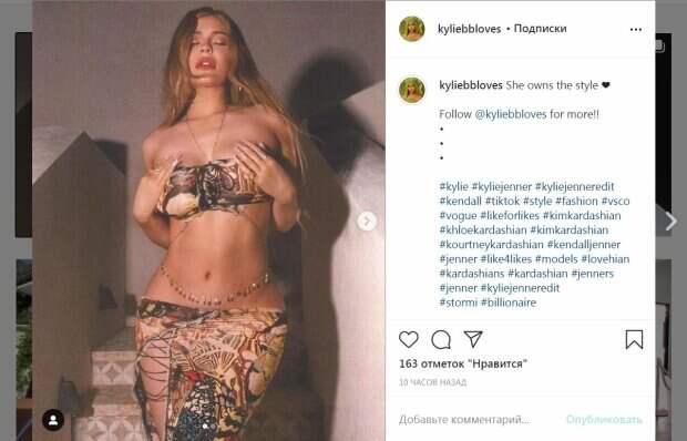 На фото соблазнительница позирует в обтягивающем коротком топике, который подчеркивал ее пышную грудь. Посередине был бантик, прибавивший горячему образу некого кокетства. Звезда надела также обтягивающую юбочку с длинным разрезом, оголившем стройную ножку. Искусительница приспустила юбку, обтянувшую ее бедра, и слегка оголившую ягодицы. На талии блестел красивый поясок, выделивший ее стройность, а также поблескивавший на упругом животике. Ким прижала ладошками грудь и закрыла глаза будто от наслаждения. "У нее есть стиль ❤", - написали авторы поста. За 10 часов пост собрал более 100 лайков и немного комментариев. Пользователи сети согласились с высказыванием в публикации и написали модели много приятного. "Забрала мое сердце", - написал один из поклонников. Ранее мы писали, что Кайли Дженнер перенесла много пластических операций на лице и теле. Звезда с помощью хирургов подправила себе нос, изменила форму подбородка, поработала над скулами, губами и зубами. Также звезда увеличила грудь и бедра. По мнению специалистов, модель сделала липосакцию, убрав с живота часть жировой ткани, липофилинг, пересадив эту жировую ткань в зону бедер и глютеопластику, установив импланты в ягодицы. Напомним, Кайли Дженнер неприлично распахнула кофточку и ухватила себя за пышный бюст А еще Politeka писала, что фигуристая Кайли Дженнер померилась «гордостью» с подругой, облачившись в тесный купальник Также Politeka сообщала, что шаловливая Кайли Дженнер похвасталась мокрыми "близняшками" в ниточках бикини