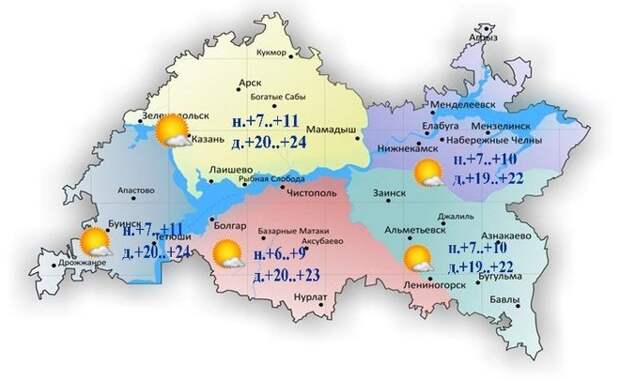 Фото: realnoevremya.ru Также синоптики прогнозируют западный и северо-западный умеренный ветер.Утром местами ожидается туман. Согласно прогнозу Гидрометцентра Татарстана, в республике на этой неделе будет теплая погода, преимущественно без осадков. Например, завтра, 1 июня, днем воздух прогреется до +21..+27 градусов.