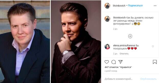 Более того, кажется, что на фото справа у артиста даже взгляд другой. "Как Вы думаете, сколько лет разницы между этими фотографиями? ☺️😎😉", - говорится в подписи. Пользователи кинулись гадать. В основном люди называли цифры от 7 до 12 лет. Литвинкович раскрыл правильный ответ в комментариях. На самом деле "между кадрами" - 15 лет. "Красавчик😻 Думаю, что лет 12) 🤔 С каждым годом все красивее🤗" "Лет 10 наверное. На второй фотографии такой опасный альфа самец)))" "15! 😃🤗 Это капец, как время летит..." - а всё такой же обаятельный !!!" "Вы похорошели❤️❤️❤️" "О, я помню тебя ещё таким, как на первом фото🤣Время и вправду быстро летит😉" "На обоих фото ты красив, Евгений" Напомним, Литвинкович является финалистом шоу «Украина имеет талант 4» 2012 года и супер-финалистом проекта «Х-фактор 3» 2013 года. В последнем случае, Евгений вошел в команду продюсера и шоумена Игоря Кондратюка, став, несомненно его любимчиком. Артист занял второе место, отдав первенство одесситке Аиде Николайчук. После окончания шоу «Х-фактор» Евгений подписал 5-летний контракт с продюсерским центром канала СТБ и начал работу над первым альбомом. Напомним, Кондратюк гневно высказался о Зеленском после награждения Потапа: «Снял штаны перед…» Как сообщала Politeka, Кондратюк в открытую назвал россиян палачами: "Ничем не отличаются от Путина" Также Politeka писала, что Кондратюк засомневался в умственных способностях Усика и Ломаченко: "Их слова не значат ни грамма"