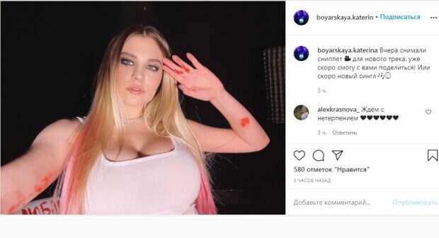 "Вчера снимали сниппет для нового трека, уже скоро смогу с вами поделиться! И скоро новый сингл", - говорится в подписи к жаркому снимку Боярской. Фанаты завалили лайками публикацию и сообщили, что с нетерпением ждут выхода нового сингла восходящей певицы. "Очень хороша", "Ждем с нетерпением", "Ждем", "Большой бюст