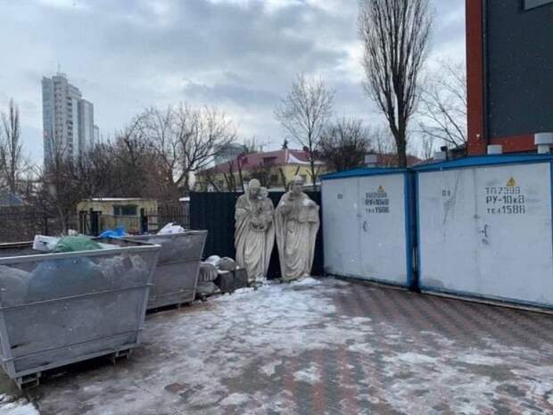 В Киеве возле мусорных контейнеров местные жители увидели две статуи размером в человеческий рост. Об этом сообщает Лівий Київ. Необычные скульптуры были обнаружены в районе станции “Бориспольская”. Они похожи на церковные, причем одна - Дева Мария с Иисусом на руках, а вторая - мужчина с книгой. Ранее мы сообщали, что в Луцке после длительной болезни скончался известный украинский скульптор Николай Головань.