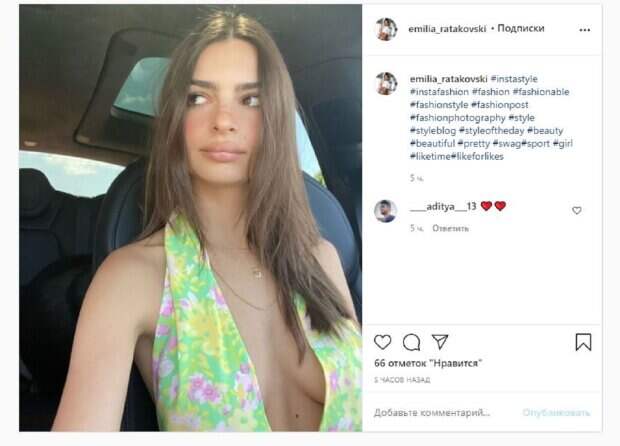 Известная модель Эмили Ратаковски показала себя в автомобиле На фото Эмили позирует в платье с большим декольте и без белья. Красотка сидела на сиденьи, а взгляд отвела от объектива камеры. Девушка дополнила образ украшениями на шее, а волосы оставила распущенными. Модель совсем не смущало то, что бюст сильно было видно, что сделало кадр максимально соблазнительным и горячим.