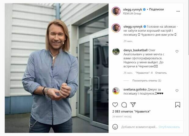 Кроме того, певец снимается в фильмах, и часто делится информацией о своих успехах в Инстаграм. А в последнем посте артист рассказал, что считает главным на съемках. "Главное на съемках - не забыть взять хорошее настроение и улыбку