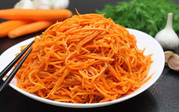 Список ингредиентов: морковь 600 г 1,5 ч. л. сахара 1/2 ч. л. соли 3/4 ч. л. черного перца 1 ч. л. кориандра щепотка красного перца 6 зубчиков чеснока 2,5 ст. л. уксуса 9% 80 мл подсолнечного масла [caption id="attachment_64548" align="aligncenter" width="1200"] Желательно, чтобы сама морковь была сочной[/caption]Приготовление (ВИДЕО): С помощью специальной терки натереть морковь.
