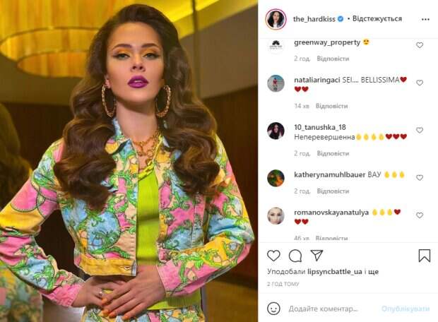 На новом снимке Юлия запечатлена в интересной локации и необычном образе. Перед камерой она появилась в разноцветном костюмчике интересного фасона с необычным узором, под пиджаком которого видно зеленую кофточку. При этом внимание привлекает не только костюмчик, но и пышная укладка певицы и ее яркий макияж с желтыми тенями и фиолетовой помадой на губах, она уверенно смотрит прямо в объектив. В подписи к фотографии Санина написала: "Italiano Donna. Style and mua @slavachaika. Hair @vitalik_datsiuk". Поклонники в восторге от такого перевоплощения звезды, Юлию заваливают комплиментами и восторженными комментариями. "Вау!", "Новое шоу? Фотосессия?", "Вау, фантастика!", "Юлечка, Donna italiana правильнее будет", "Bellissima", "Вы потрясающая в любом образе", "Шикарно", "Вам очень идет", "Цвета просто бомба", "Фантастичная", "Восхищаюсь Вами", "Очень красивая", "Такая красивая!", "Просто красавица", - пишут пользователи в комментариях к фото. Напомним, Санина из The Hardkiss ошеломила новой внешностью, такого от нее не ждали: "Пугачева, ты ли это?". Как сообщала Politeka, Санина из The Hardkiss на съемках "Орла и решки" наплевала на безопасность, поразив кадрами: "Нет страха…". Также Politeka писала, Юлия Санина показала, что не вошло в шоу "Орел и решка", ошеломив признанием: "Мне трудно представить. ..".