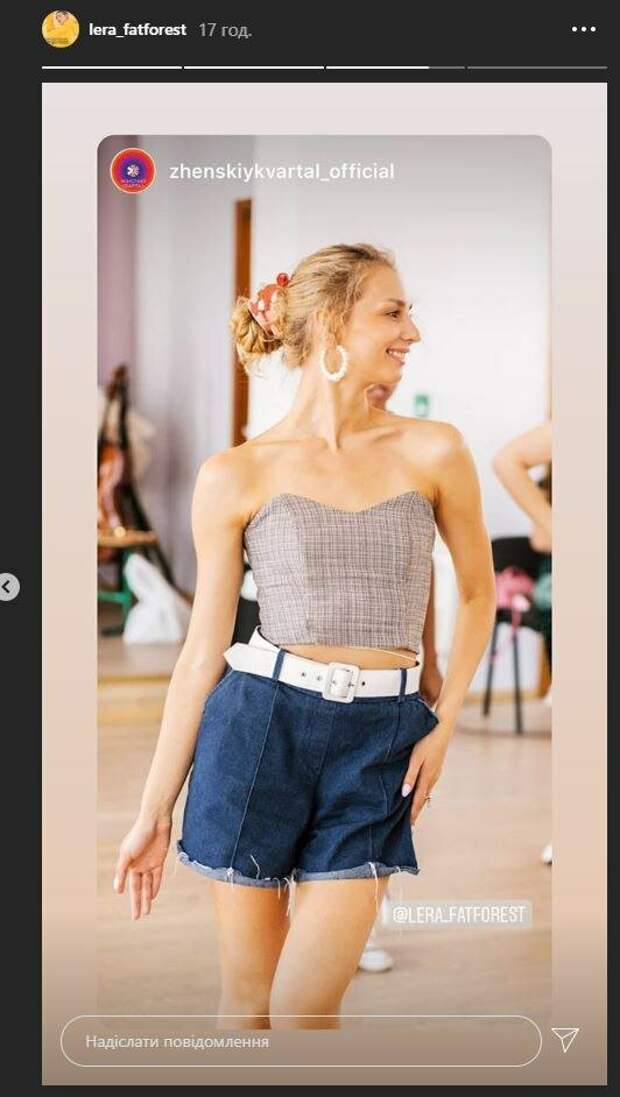 Известная украинская актриса Лера Товстолес показала себя на репетиции "Квартал 95" На фото красотка была в джинсовых шортах, которые держал белый ремень и клетчатом топе без бретелек. Образ Лера дополнила стильными серьгами, а волосы собрала в хвост. На кадре Товстолес не смотрела в объектив, а отвернулась от камеры.