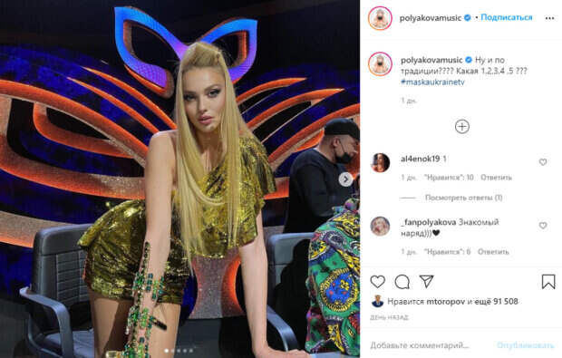Певица Оля Полякова в новом образе хвастнула помолодевшим видом Как передает Politeka.net, 36-летняя звезда опубликовала свежие фото в своем микроблоге в Инстаграм, на которых предстала в сценическом образе для шоу "Маска". Красотка показала себя в ультракоротком золотистом платье на одно плечо, с роскошной прической и идеальным макияжем.