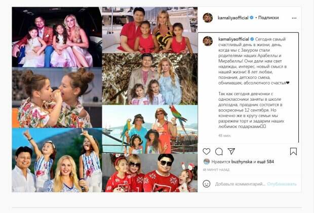 По словам артистки, у нее были диагностированы эндометриоз и аутоиммунный тиреоидит (болезнь щитовидной железы). В США певица делала операцию именно по удалению эндометриозных тканей. Многолетняя борьба с болезнями принесла Камалии удачу - в итоге она стала мамой девочек Мирабеллы и Арабеллы в 2013 году. В своем Инстаграм певица рассказала, что 6 сентября - для нее самый радостный день, ведь она стала мамой. "Сегодня самый счастливый день в жизни, день, когда мы с Захуром стали родителями наших Арабеллы и Мирабеллы! Они дали нам свет надежды, интерес, новый смысл в нашей жизни! 8 лет любви, познания, детского смеха, обнимашек, абсолютного счастья❤️ Так как сегодня девчонки с одноклассниками заняты в школе допоздна, праздник состоится в воскресенье 12 сентября. Но, конечно же, в кругу семьи мы разрежем торт и задарим наших любимок подарками