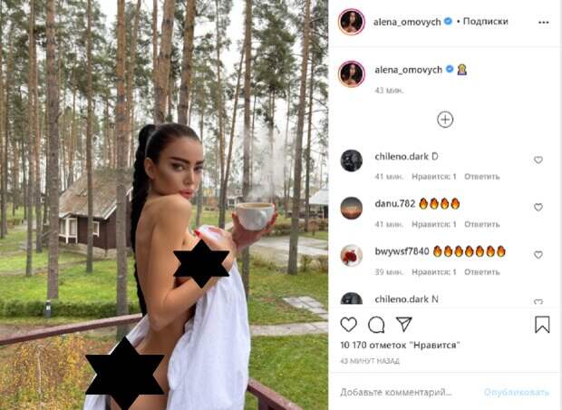 В этот раз «украинская Карашьян» решила эпатировать публику тем, что вышла на балкон среди января, сбросив всю одежду. С собой она захватила простыню, которой слегка прикрыла выдающийся бюст и переднюю часть тела. А вот ягодицы она решила не прикрывать. Чтобы не замерзнуть Омович взяла чашку с горями чаем или кофе. Фолловеры принялись обсуждать увиденное в комментариях. "А теперь скинь видос как делалась эта фотка", " Когда и холодно и горячо одновременно ❄️", " Хотел бы я быть соседом ❤️", "Каждая подруга здесь так хочет пить", " Какой шикарный вид", - пишут в сети. Ранее пышногрудая Алена Омович похвасталась перед поклонниками новой прической. Напомним, что украинская Кардашьян с подружкой не удержали юбки на ветру, эффектные кадры А еще Politeka сообщала, что украинская Кардашьян забыла про стыд, вывалив напоказ аппетитные «дыньки» Также Politeka сообщала, что украинская Кардашьян без одежды соблазнительно выгнулась и поразила достоинствами фигуры