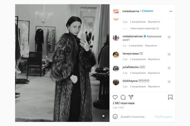 Дочь Валерия Меладзе Арина сломавшая шею в Рождество, показала новое видео Как передает Politeka.net, 18-летняя девушка выложила кадры на своей странице в "Инстаграм". (Чтобы посмотреть видео – проскролльте вниз). Похоже, что девушка уже восстановилась. На новом черно-белов видео она красуется перед зеркалом в объемной меховой шубе, под которой надета черная водолазка и брюки.