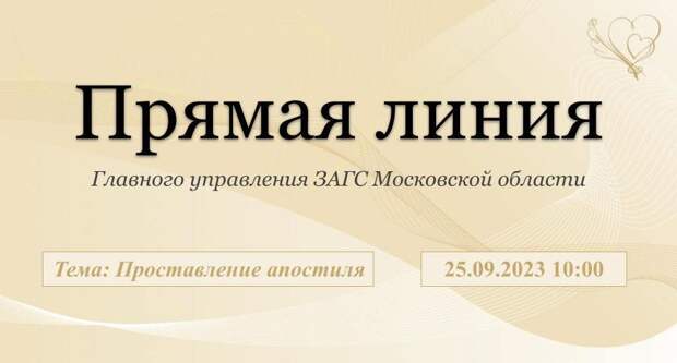 Первый замначальника Главного управления ЗАГС Московской области Ольга Малахова Ольга проведет прямую линию. Тема мероприятия — «Проставление апостиля».