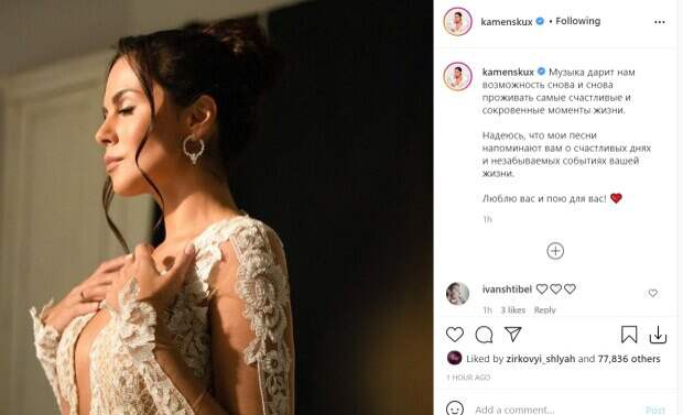 Узоры в виде цветов спрятали от любопытных глаз интимные места артистки и открыли лишь то, что можно видеть посторонним. Образ дополнила элегантная прическа с двумя прядями, которые очертили ее лицо, и крупные серьги. Для чувственного снимка Настя Каменских позировала в комнате, подставив лицо ярким лучам солнца. Она прикрыла глаза и положила руки себе на грудь, придав кадру нежности. "Музыка дарит нам возможность снова и снова проживать самые счастливые и сокровенные моменты жизни. Надеюсь, что мои песни напоминают вам о счастливых днях и незабываемых событиях вашей жизни. Люблю вас и пою для вас!", - подписала фото Настя Каменских. В комментариях поклонники выразили звезде восхищение и оценили ее музыкальное творчество: "Ваши песни вдохновляют"; "Ваши лирические песни на украинском, вашим тембром это что-то невероятное"; "Просто огонь"; "Ты очень , очень Талантливая певица. Любим тебя"; "ради этого образа весь пирсинг даже сняла"; "Боже, какая красивая