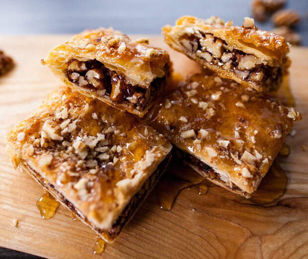 Пахлава — лакомство знакомое с детства. При одном только произношении этого слова, во рту становится сладко и тут же накатывают теплые воспоминания о море, солнце и песке) К сожалению, теплые летние деньки уже позади, а на заморских курортах даже не знаю есть ли такие сладости, да и особо разъезжать нет времени.