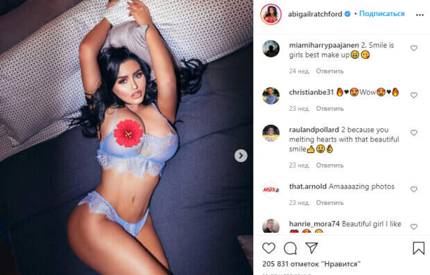 Американская модель Эбигейл Рэтчфорд, покорившая социальную сеть необычной внешностью, устроила фотосессию в кружевном белье Модель показывает фактически каждый день новые образы, поражая фигурой в белье, кружевных халатах и стильных пижамах. Являясь представителем модной одежды, девушка снимается для магазинов довольно часто, поэтому фанаты всегда реагируют на подобные кадры весьма бурно.