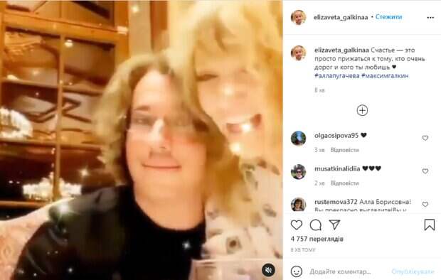 Российская звездная пара Алла Пугачева и Максим Галкин показали свои чувства на камеру Об этом сообщает Politeka со ссылкой на фан-страницу дочери Галкина и Пугачевой Лизы в соцсети. Так, в Сети появилось видео, на котором российские артисты обнимаются и целуются. Чтобы просмотреть запись, доскольте новость до конца.