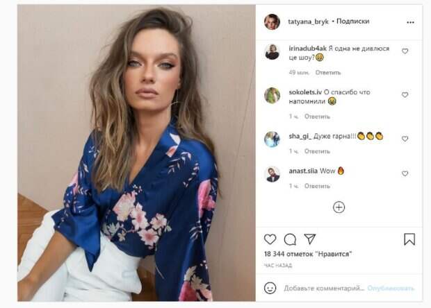 Как можно понять, модель собиралась выпить игристого вина с креветками, проведя время за просмотром телешоу. Об этом пишет Politeka.net со ссылкой на страничку знаменитости. "Купила Просекко и креветки. Вечер сильной и независимой....Готовлюсь к премьере Холостяк, а вы будете смотреть?", - написала Татьяна. Фанаты поставили почти 20 тысяч лайков и написали комментарии: "Какая красивая, не могу", "Нет, как хорошо, что не страдаю этими шоу", "Боже, какая красотка", "Какая красивая! Очень вам идёт блуза", "Таня, очень красиво с таким окрашиванием и длинной", "Таня, разрыв просто", "Я одна не смотрю это шоу?". Мы писали, что модель и победительница "Супер Топ-модель по-украински" Таня Брык рассказала о правильном похудении. Рассказывая о том, как найти мотивацию и силы для того, чтобы сбросить вес, девушка подчеркнула, что достаточно просто посмотреть в зеркало. Если вы и тогда не захотите ничего менять, значит вас все устраивает. В этом и весь секрет. Напомним, Таня Брык из "Супер Топ-модель по-украински" в соблазнительном образе ошарашила познаниями в БДСМ А еще Politeka сообщала, что Таня Брык из "Супер Топ-модель по-украински" в прозрачном белье не оставила равнодушных Также Politeka писала, что Таня Брык из "Супер Топ-модель по-украински" кокетливо открыла плечики, приворожив непринужденным видом