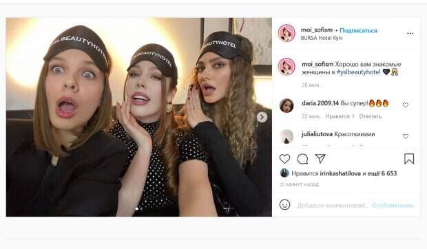 Втроем они позируют в одном из номеров киевского отеля. Все три красотки одеты в черное, а на голове у них можно заметить фирменные повязки отеля. Фотограф и модели демонстрируют на камеру забавные выражения лица, словно подружки, которые собрались повеселиться вместе. «Хорошо вам знакомые женщины», - подписала кадры Плакидюк. Ее подписчики тут же принялись комментировать пост. «Вы супер!», «Какие все красотки», «Какие крали», «Секси», «Какие девчонки», - пишут люди. Ранее мы писали, что судья проекта «Супер Топ-модель по-украински» Соня Плакидюк начала заниматься спортом с начала карантина. В социальной сети Инстаграм звезда поделилась кадром после занятий, причем сделала селфи девушка прямо в уборной возле унитаза и раковины. На снимке Соня показала себя в обтягивающих спортивных штанах и короткой черной кофте. Напомним, бескомплексная Соня Плакидюк показала себя в туалете и нарвалась на хамство: "Правильно, худейте". Как сообщала Politeka, Плакидюк из "Супер топ-модель по-украински" поразила резкой переменой во внешности: "Попрощайся со своими...". Также Politeka писала, что фигуристая Плакидюк из "Супер топ-модель по-украински" поиграла бедрами: "Новый зайчик Playboy".