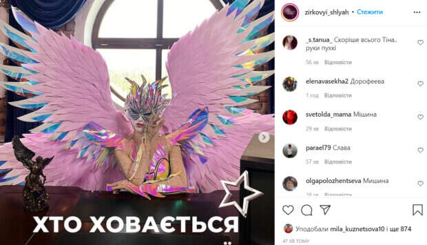 «Кто спрятался под маской яркой Феи? Зрители считают, что по образу это могут быть Надя Дорофеева @nadyadorofeeva, Слава Каминская @babaslavka, Ксения Мишина @ misha.k.ua или Тина Кароль @tina_karol. Как думаете, кто угадал?», - подписали фото авторы аккаунта. В комментариях зрители стали обсуждать маску, пытаясь угадать, кто же прячется в костюме. Украинцы озвучивали свои догадки, но больше всего зрителей разглядели под маской Тину Кароль. «Очень хотелось бы Тину Кароль», «Мишина, та, которая Сашина», «Тина Кароль», «Леся Никитюк», «БабаСлава100%», «Скорее всего Тина... руки пухлые», «Тина, сразу пришло на первой же секунде», - пишут пользователи сети. Напомним, что украинцев удивили Феей на шоу "Маска", подробности: "Божечки, какая...". Как сообщала Politeka, зрители разгадали, кто из звезд оказался Грифоном: «Захватывает дух». Также Politeka писала, что Робот из шоу "Маска" засветил важную деталь, которую раньше не замечали: "Женщины поймут".
