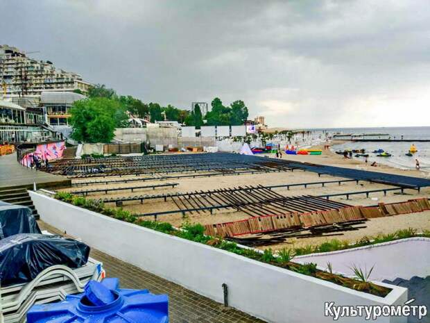 В мае против строительства был протест, но застройщику удалось получить разрешительные документы. "На несколько дней были остановлены любые работы. Дальше все произошло по лучшим традициям трухановской Одессы: коррупционные органы местной власти выдали все разрешительные документы застройщику, а господин Кучук (Михаил Кучук, первый заместитель городского головы - ред.) лично легализовал захват пляжа в Аркадии. Теперь любые попытки демонтировать металлические конструкции будут иметь последствия в виде уголовных дел", - написал в Facebook активист Демьян Ганул. В комментариях одесситы пишут, что компании, перегородившей желающим позагорать доступ к песку, пришлось дать властям немалую взятку. Проводит работы законный арендатор пляжа - ЧП "Нелл" под предлогом благоустройства. Якобы предприятие ремонтирует ливневой коллектор “Новоаркадиевский”, а настил должен предотвратить образование на пляже грязевого фонтана, появляющегося во время дождя. Одесские журналисты сомневаются, что настил поможет справиться со стихией, в чем они уверены, что бесплатно позагорать в Аркадии теперь можно только на несуразных галечных клочках пляжа под бетонной стеной и тонкой полосы у кромки моря. При этом они соглашаются, что ЧП "Нелл" получил участок законно - договор аренды предусматривает требование отступить от воды и 30% территории пляжа предоставлять бесплатно. [caption id="attachment_8077440" align="alignnone" width="1600"] Фото: "Культурометр"[/caption]