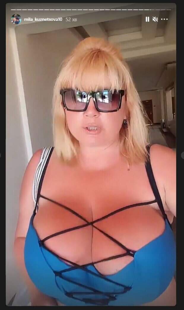 Известная модель Мила Кузнецова, которая обладает 15-м размером бюста, показала себя в последний день отпуска Звезда показалась в этот раз в купальнике, который состоял частично из веревочек. Девушка прошлась по коридору, хвастаясь пышным загоревшим бюстом, который практически не удалось вместить, видно, что "бомбочки" так и просятся на свободу.