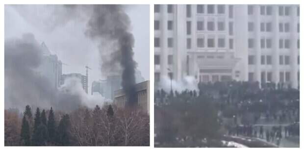 Так, протестующие врываются в здание администрации через двери и разбитые окна. На видео, который публикуют в сети участники протеста, слышны звуки ударов, вероятно, протестующие пытаются прорваться в кабинеты. Захваченная администрация города Алматы горит, также в огне здание прокуратуры. В сети начала появлятся информация о том, что протестующие открыли огонь по военным.