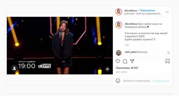 По словам Крутиковой, она не думала, что участие в проекте ей дастся так тяжело, ведь она не хотела делить мужчину с кем-либо. На днях стало известно, что гимнастка пришла на другой проект - "Україна має талант". (Чтобы посмотреть, доскролльте до конца страницы) Там она заставила судей и зрителей кричать от восторга. В одном белье девушка показывала трюки на большой высоте. "Сейчас "холостяк" кусает локти", - произнесла одна из членов жюри Ксения Мишина. "Уже совсем скоро на телеканале @stbua ♥️ Я волнуюсь и конечно же жду вашей поддержки