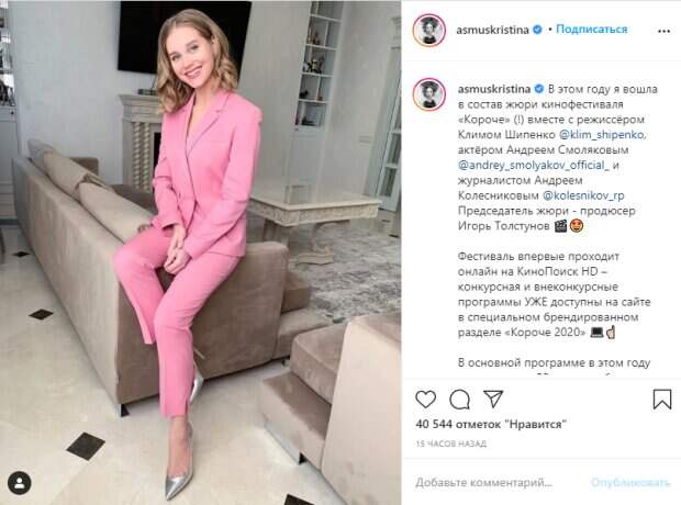 Жизнь 32-летней российской актрисы Кристины Асмус продолжает находиться в центре внимания пользователей социальных сетей Несколько часов назад Кристина поделилась в социальной сети Инстаграм ярким фото, на котором позировала предстала в стильном брючном костюме розового цвета и серебристых туфлях на шпильке.