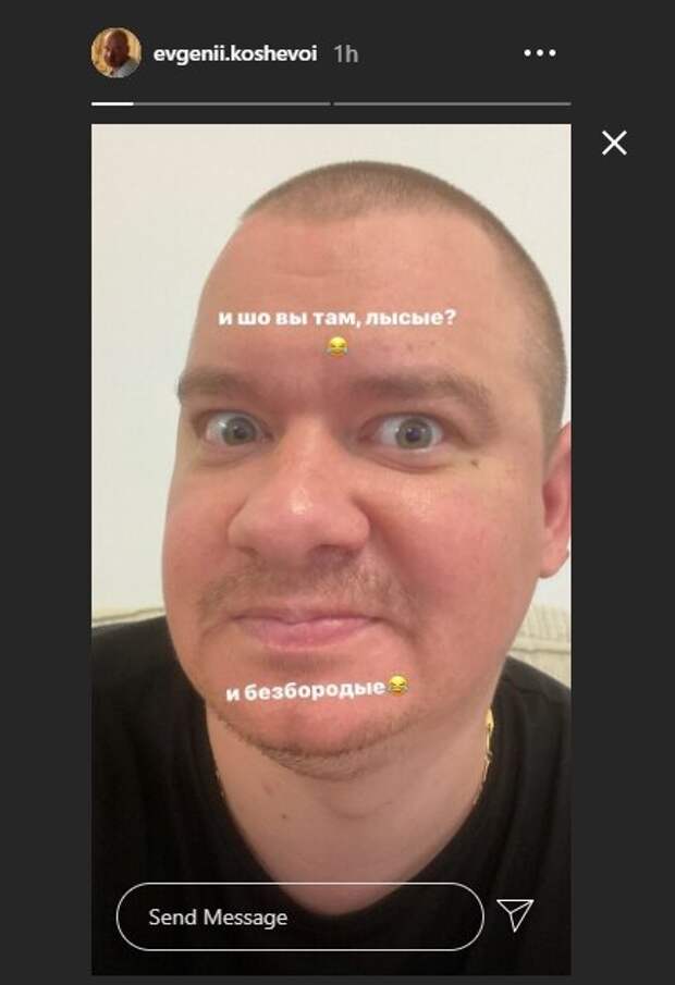 В таком виде актера даже сложно узнать, так и хочется поинтересоваться, а где же лысина. Вдобавок, он слегка выпучил глаза и сделал забавное выражение лица. "И шо вы там, лысые? И безбородые", - обратился Евгений Кошевой к пользователям соцсети. К сожалению, они не смогли ему ответить, ведь фото появилось в сториз, где комментарии недоступны. Ранее Евгений Кошевой принял решение не брить лицо и лысину, пока у него есть время на карантине. Артист написал в микроблоге, что ему захотелось некоторое время пожить с волосами, а в подтверждение своих намерений он опубликовал фотографию крупным планом, с уже слегка отросшей прической. Комик также заявил, что не будет бриться. А еще раньше Евгений Кошевой изменился до неузнаваемости ради пародии на Савика Шустера и его известное ток-шоу. Благодаря фильтру у актера появились огромные глаза, уши и носа, а также практически исчез рот. Напомним, затравленная дочь Кошевого из «Квартал 95» не выдержала и решилась на признание. Как сообщала Politeka, бойкот "Кварталу 95" под руководством Кошевого, народ готов на крайние меры: "Женя, скоро пачка треснет". Также Politeka писала, что Кошевой из «Квартала 95» превратился в рэпера, Потап обзавидуется: «Йоу, друзья! ».