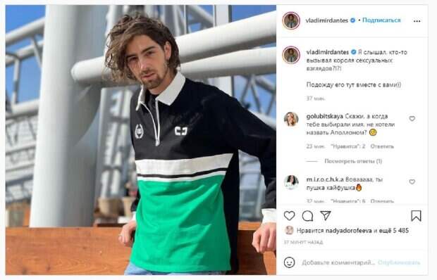 Певец не так давно вернулся к творчеству и сейчас активно развивает социальные сети. На фото Владимир показался в кофточке и джинсах. Волосы у Дантеса были немного вьерошены, а смотрел красавчик в объектив камеры проникающим взглядом. "Я слышал, кто-то вызывал короля сексуальных взглядов?!?! Подожду его тут вместе с вами))", - написал Владимир под фото. Фанаты поставили более 5 тысяч лайков и написали комментарии: "Скажи, а когда тебе выбирали имя, не хотели назвать Аполлоном?", "Вова, ты пушка кайфушка", "Я не вызывала короля, но ты крутой", "Покажи фотку с короткими волосами", "Вова ты такой красивый", "Вова ты такой красивый", "Так это ж ты!)", "Вова, твои родители не море?" Сообщалось, что известный украинский певец и муж Нади Дорофеевой Владимир Дантес откровенно рассказал о преодолении своих страхов. Артист впервые раскрыл, чего ему стоило выйти на сцену после длительного перерыва. Он рассказал, что с 2014 года не выступал на сцене, поэтому в 2019 году выпуск первой новой песни за эти годы дался ему очень сложно. Напомним, сонная Дорофеева в мини-топе показала, чем занимается с Дантесом на пол А еще Politeka писала, что муж Дорофеевой Дантес превратился в дерзкого мачо, не устояла даже Никитюк Также Politeka сообщала, что Дантес разразился эмоциями из-за поцелуя его жены Дорофеевой и Винника, слов не подбирал