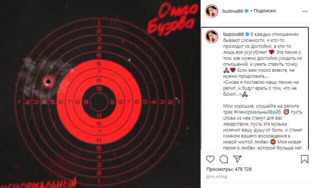 Российская певица Ольга Бузова рассказала о несчастной любви Как передает Politeka.net, соответсвующий пост она опубликоала на своей страничке в Instagram. "В каждых отношениях бывают сложности, и кто-то проходит их достойно, а кто-то лишь все усугубляет. Эта песня о том, как нужно достойно уходить из отношений, и уметь ставить точку.