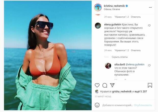 Несмотря на три беременности и роды, супруга Григория выглядит очень эффектно. Красотка похвасталась фигурой в одном из новых постов в Инстаграм. На снимке Кристина позировала в купальнике и шортах. Лифчик обтянул грудь, подчеркнув ее объемы. Завершила она образ стильными аксессуарами. Примечательно, что Кристина поставила геолокацию "Одесса". "Горячее лето ❤️