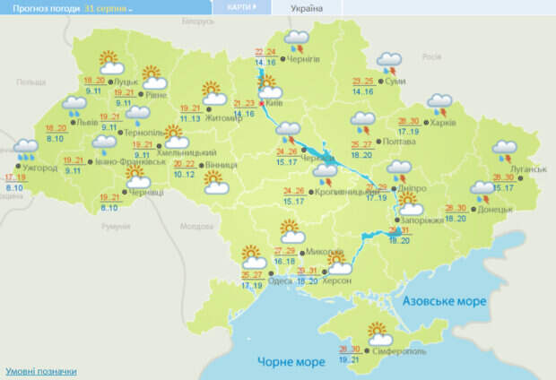 При этом температура воздуха будет сильно отличаться в зависимости от области. В одних областях будет по-летнему жарко, а в других похолодает до осенней температуры. Так, в западных областях во вторник ожидается 18-21 градус. Ситуацию усугубят дожди, которые пройдут во Львовской, Закарпатской, Ивано-Франковской и Тернопольской областях. Ближе к центральным регионам погода немного улучшится. В Киеве ожидается 21-23 градуса. При этом без осадков. В остальных регионах температура прогреется до 24-26 градусов и возможны грозовые дожди. Жарче всего в последний день лета будет на Юге страны. Там ожидается около 25-31 градуса. Также тепло будет в восточных регионах. Температура будет держаться в районе 28-30 градусов, но грозовые дожди атакуют регион. Добавим, что уже 1 сентября дожди переместятся в Центр, а на Западе температура упадет еще ниже. В целом, в ближайшее время в Украине будет чувствоваться приход осени. Напомним, что атмосферный фронт испортит погоду в Украине: свежий прогноз. Как сообщала Politeka, 1 сентября в Украине резко похолодает: где ожидаются дожди. Также Politeka писала, что жара до +35 и грозовые дожди испытают украинцев на прочность: к чему готовиться.