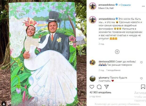 На опубликованной фотографии Седокова позирует рядом со своим возлюбленным. Благодаря стилистике фотозоны кажется, что пара собралась на свадьбу: певица якобы в белом платье, а мужчина в смокинге. «Совет да любовь!🙏🙏🙏 Так раньше говорили», «просто будьте счастливы», «дай бог, чтобы прожили в счастье и понимание до конца жизни», «Я так рада за вашу пару, вы такие счастливые ❤️💓��💓 ещё большего счастья и любви бесконечной», «Желаю чтобы ваши глаза так же блестели спустя лет 50», — пишут ее поклонники. До этого мы рассказывали, что исполнительница Анна Седокова сверкнула безупречными формами во время семейного отдыха «Рубрика #whoworeitbetter Или у кого в семье круче тачка 😎 Гектор выбирает Lamborghini Huracan, Янис Aventador, девочки Rolls Royce, а я традиционно счастлива в S coupe…» — говорится в сообщении. Напомним, счастливая Седокова едва удержала пышные формы в слишком тесном декольте: "Аж вываливаются". Также Politeka писала, что счастливая Анна Седококова официально объявила о помолвке с Янисом Тиммой: "Сказала ему да!". Как сообщала Politeka, Седокова в невидимом бикини без стыда похвасталась умениями молодого жениха.